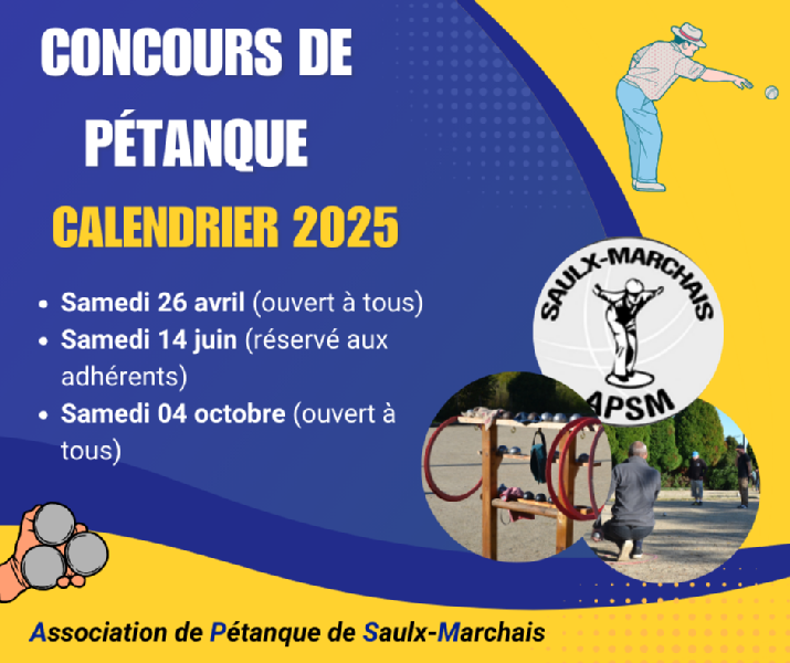 Créée en 1990, l’Association organise chaque année, sur le terrain de boules du village, des concours de pétanque ouverts à tous.