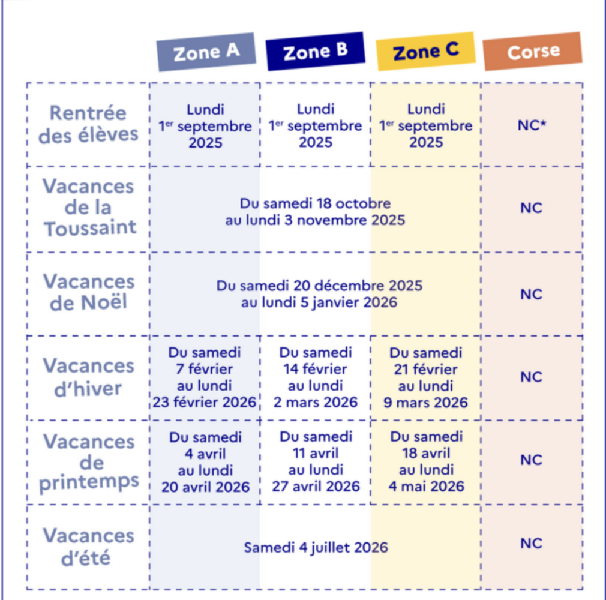 Vacances scolaires 2025 / 2026