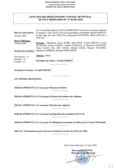 La commune met à votre disposition la liste des délibérations examinées lors du conseil municipal du 21 mars 2026.